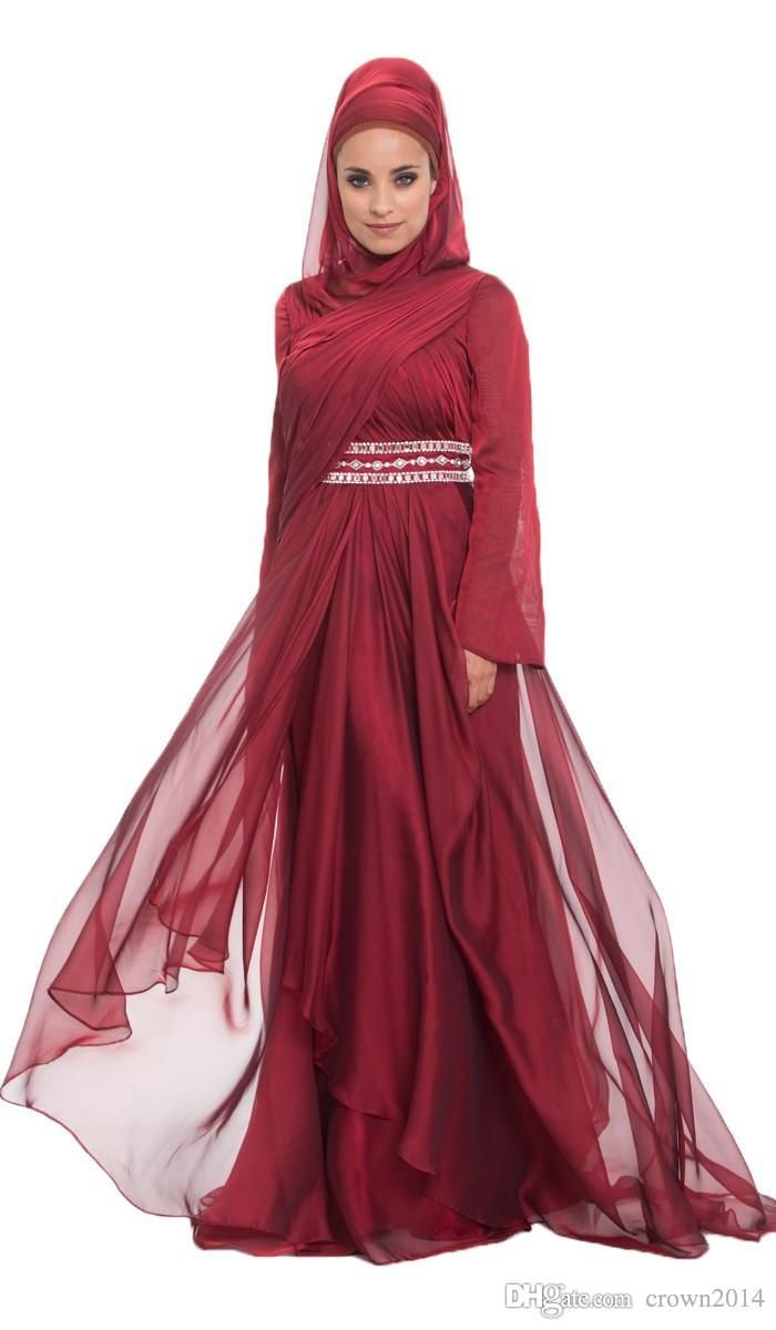 Burgundy Chiffon Formal Evening Dresses Long Maxi With Hijab Long Sleeves Bridesmaid Dresses Beaded Pleated Arabic Muslim Prom Party Gowns From Ture Lover 94 67 Dhgate Com