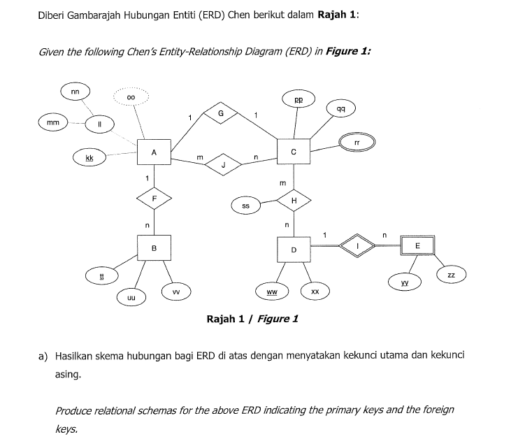 Solved Diberi Gambarajah Hubungan Entiti Erd Chen Berikut Chegg Com